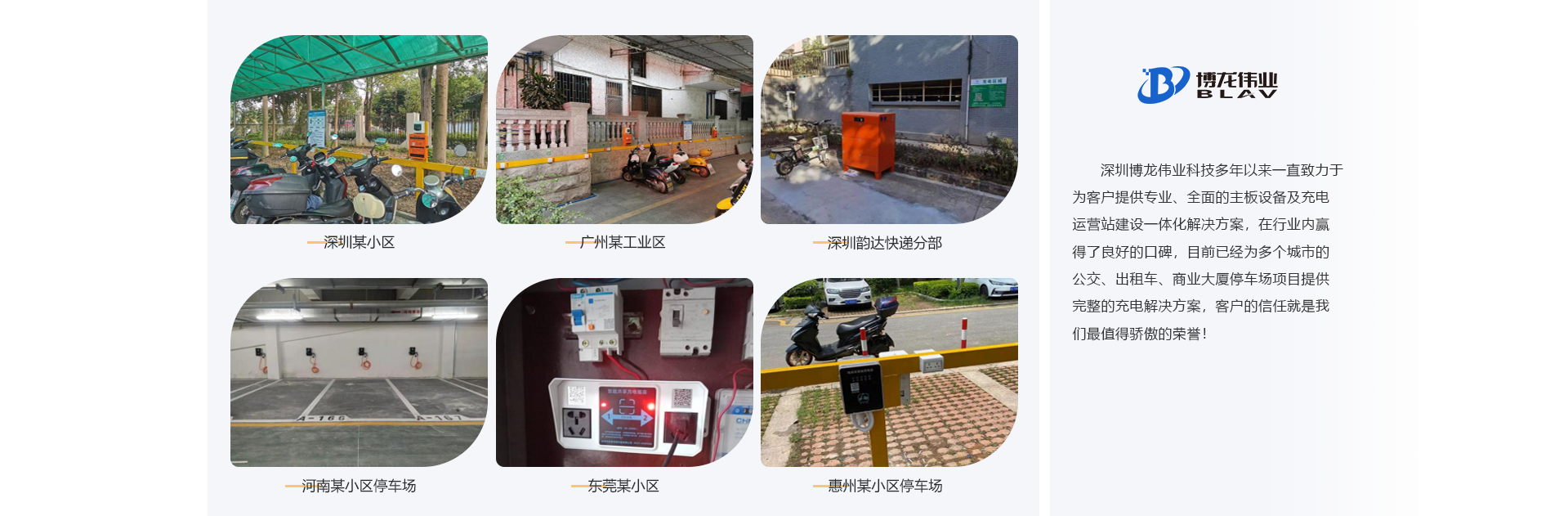 深圳市博龍偉業科技有限公司創辦于2002年,是一家集研發、制造、銷售于一體的科技企業。專業從事物聯網智能控制、共享充電、遠程智能控制、智能GPS自動報站的研究、開發、制造及銷售,憑借公司強大的技術力量和經濟實力,不斷開發出具有國際先進技術水平的新產品。公司產品廣泛適用于公交車、觀光車、電動車充電、新能源汽車充電、智慧社區、智慧園區等。 項目案例有: 共享電瓶車充電樁,共享單車、共享按摩椅、共享充電寶、共享紙巾機、醫院共享陪護床、共享復印 機、共享雨傘、遠程控制開頭電源等。